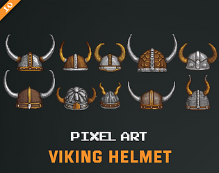 A downloadable pixel-art asset pack with 10+ uniques Viking Helmet