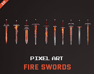 A downloadable pixel-art asset pack with 10 uniques Fire swords