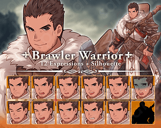Classic adventurer sprite with 12 expressions + silhouette. Great for games, TRPGs, and VNs.