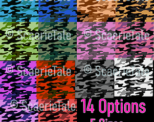 A set of 14 different colors of 2D camouflage textures from 256 to 4096px for use in any project!