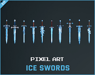 A downloadable pixel-art asset pack with 10 uniques Ice Swords