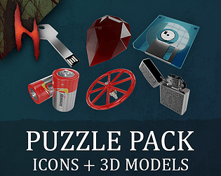 Complete set of low-poly puzzle items and icons commonly used in classic horror games such as Resident Evil