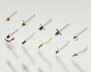 With this resource pack you will get 9 items 32x32 pixel art bladed weapons.