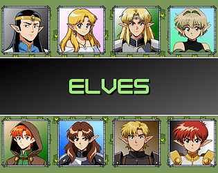 128x128 Retro Anime-styled Fantasy portraits of Elves, with a variety of clothing and hair styles