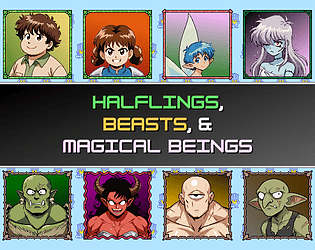 128x128 Retro Anime-styled Fantasy portraits of Halflings, Beasts, and other Magical Beings