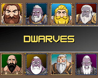 128x128 Retro Anime-styled Fantasy portraits of Dwarves and Dark Dwarves
