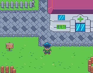 16x16 character sprites with 4 directional, 3 frame walk cycles