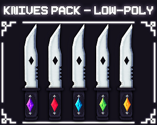 An asset-pack containing 5 different knives with a gem stone attached to them.