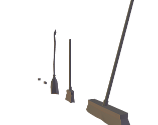 Low poly brooms & two small scrub brush. One larger, another most common and one last more older style.