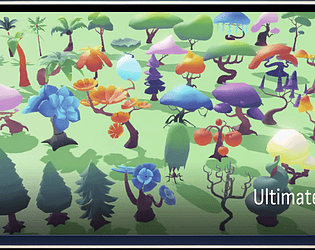 A vibrant low-poly forest asset pack with customizable trees, wildlife, and foliage for games and animations
