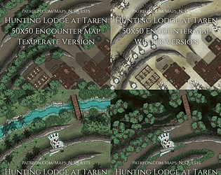 20 VTT ready battlemaps featuring cabins, camps, and ruins. All maps include Day and Night versions.