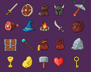 “25 clean 32×32 pixel art UI icons for menus, HUDs, and inventory systems. Free to use in your games.”
