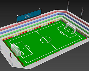 This package includes a 3D football mini stadium model with scoreboards and flags.
