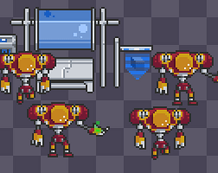 3 Droids w/ 6 animations each. Great addition to the Sci-fi Lab Tileset!