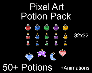 A clean and versatile pixel art potion pack for RPGs, platformers and inventory-based games.