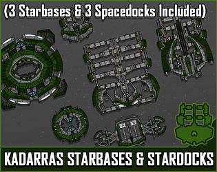 3 Starbases and 3 Spacedocks as pixel art space buildings for adding to 2D games.