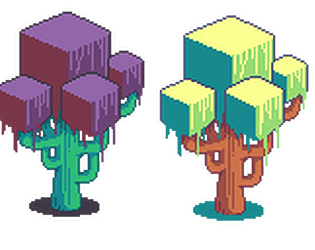 Handcrafted pixel trees with 35+ variations across 4 seasons