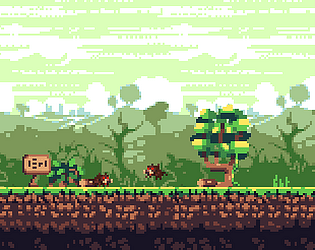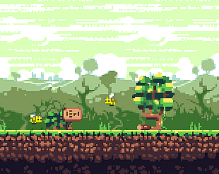 A compact 8x8 pixel grass & dirt tileset with trees, bushes and decorations – perfect for bright, cute platformers.