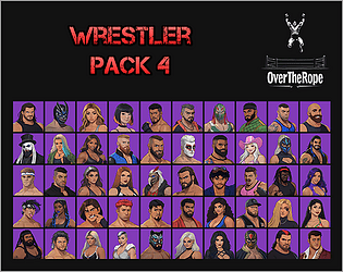 50 HD wrestler graphics for games, projects—includes with/without backgrounds, perfect for wrestling sims and designs.