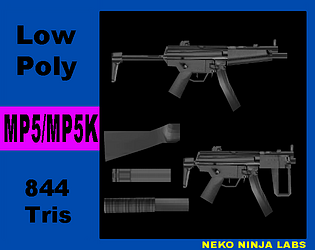 Low poly mp5 mp5k smg submachine gun game ready asset