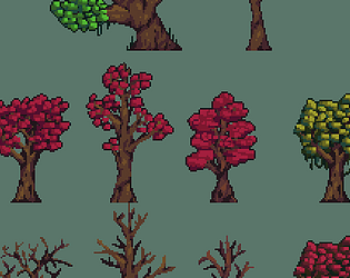 230+ handcrafted sprites of trees, from saplings to adult trees. Items included