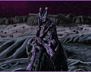 A mysterious robot that sits on the moon. You just disturbed him and he looks irritated!