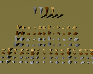 A collection of 20 hand-sculpted rocks, each with 6 texture variants to suit your artstyle.