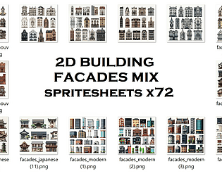 2D front view building facades pack in different styles