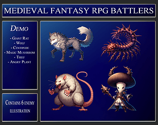 6 RPG monster battler assets for a medieval fantasy game