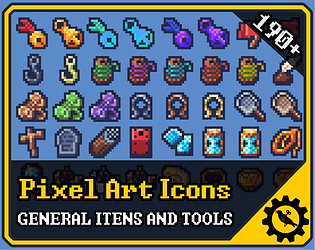 192 16x16, 32x32 and 64x64 beautiful General Itens and Tools Pixel Art icon pack