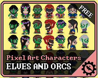 Elves and Orcs pack of a 48x48 pixel art character collection.