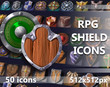 16 Shield Images in Hand-Painted Style, Total Images: 17 (PNG - 256, 512, 1024, Atlas - 1024 x 1024)