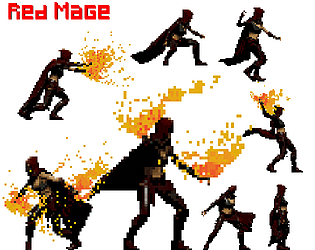 Side-Scroller style Red Mage character with Fire Explosion Magic Attacks