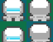 Pixel art space buildings in top view for an automation game.