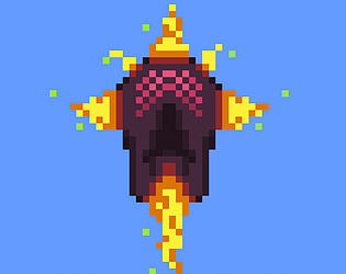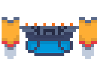 Animated pixel-art spaceship with booster effects, perfect for 2D space games.