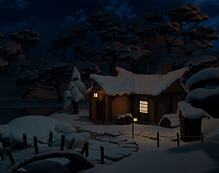 Stylized winter cottage scene with 32 objects. Overall amount of tris: 130k