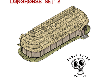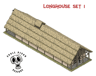 A set of maps showing the interior layout and exterior of a Bronze Age longhouse for use while playing a ttrpg.