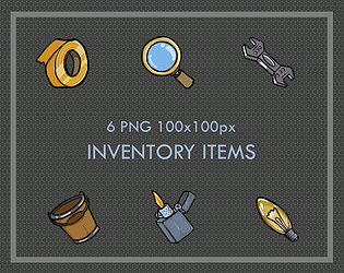 6 PNG 100x100px Inventory Items for Point Click Adventure Games
