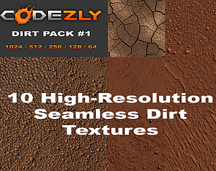 10x high-resolution (1024px) dirt textures in various condition (cracked, dusty, soft, etc.)