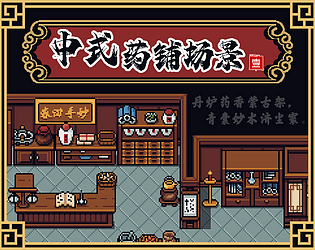 Ancient Chinese Interior Pixel Art-Medicine shop