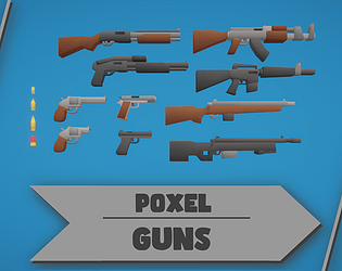 Poxel (poly voxel) rigged guns package for artsy/ calm style look with super easy customization.