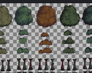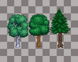 Highly detailed pixel art trees, perfect for backgrounds in platformers, visual novels, and illustrations