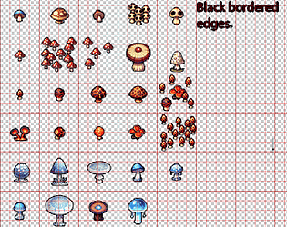 Regular Mushrooms, Fire Mushrooms, Ice Mushrooms for use in your Games.