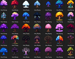 55 magical, colorful pixel trees for RPGs, platformers, and 2D games
