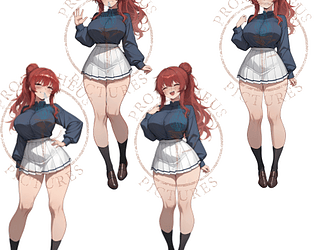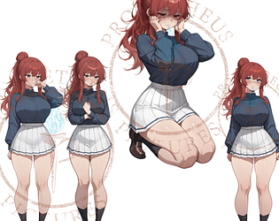 Free redhead college girl sprite pack with 4 emotions—perfect for visual novels, dating sims, and RPGs.