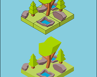 A small pack that contains 2 tree types, 3 rock types, 1 ground type and 1 watering hole