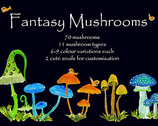 Traditional hand painted mushroom pack with 70 files including 11 mushroom types & 6 to 9 colour variations