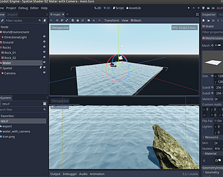 Spatial Shader Water with Objects and Camera in Godot 3.2.1