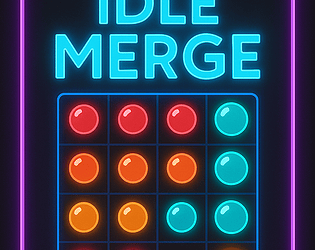 A neon-style idle merge HTML5 template where orbs merge into stronger versions and generate passive income.