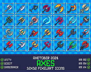 Axetober 2024 Axes 32x32 Pixelart Icons